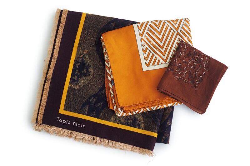 ストールやスカーフはサイズ違いがあれば、首や腰にさらっと巻けます。