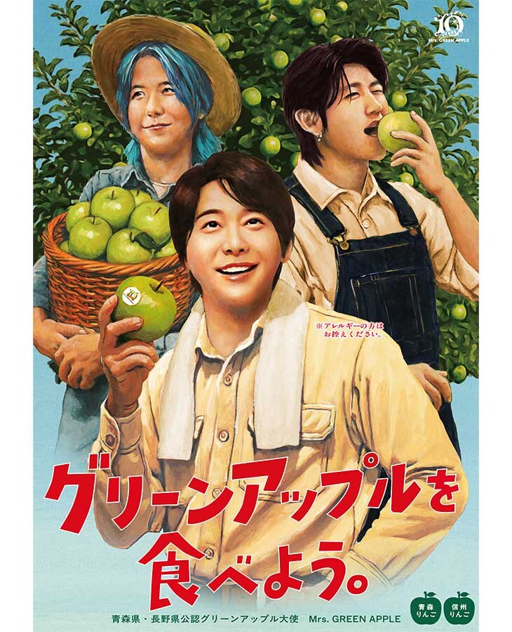 そんな青リンゴの魅力をもっと知ってほしいと、日本を代表する2つの産地・青森県と長野県がタッグをを結成。そして今回、その魅力を伝える「グリーンアップル大使」として、国民的人気バンド・Mrs. GREEN APPLEが任命されました。