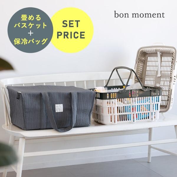 ⇒【2点セット】 bon moment 買い物カゴがまるっと入る 保冷バッグ/ボンモマン & 折りたたみバスケット
