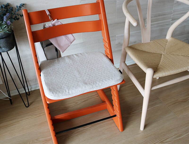 そんなときの救世主が、大人の椅子と合わせて、ちょうどいい高さで使うことができる「キッズ用のお食事クッション」。