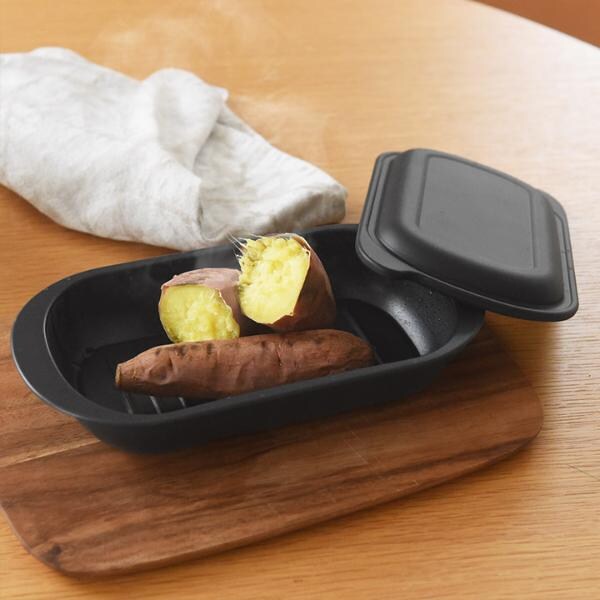夜遅くに小腹がすいたとき、キッズの軽食、食事でもお菓子でもないものを食べたいとき、家から出たくない日のおやつにも。この容器とサツマイモさえあれば、家に居ながら「石焼き~いも~、ホックホク~」です。