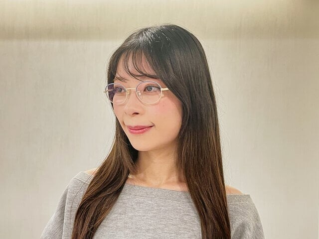 「続・ねころりん」は、太めのフレームでカジュアルな雰囲気でしたが、「ねころりんmimi」はシリーズ初のメタルフレーム。知的で落ち着いた印象のメガネなので、カジュアルでもビジネスシーンでも着用しやすい見た目がポイントです。