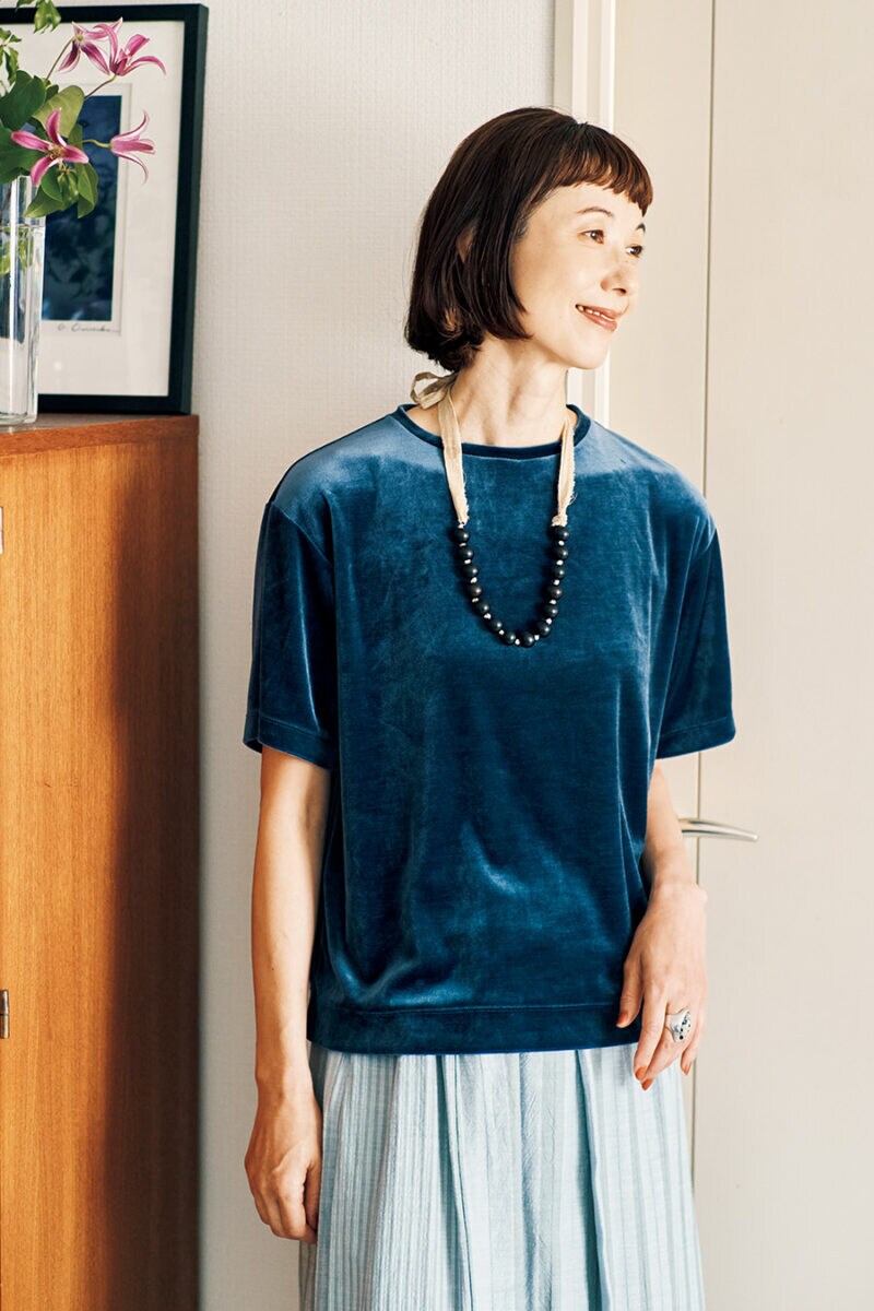 Tシャツをコットンやリネンから、ベロアにチェンジ。