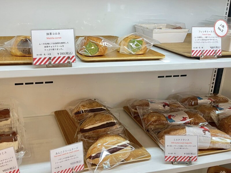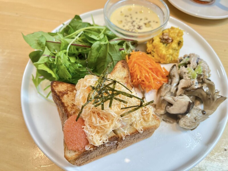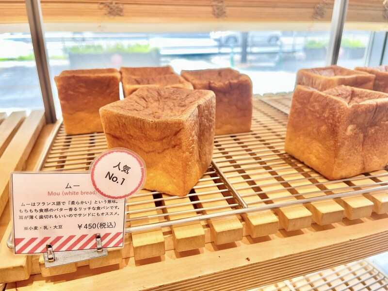 お店の看板商品の食パン「ムー」に、博多名物明太子を合わせた博多店オリジナルメニュー。