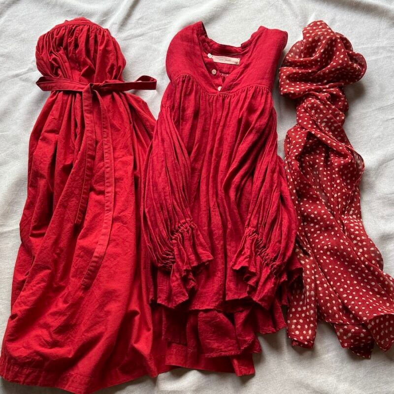 娘の頃から赤色を好みましたが、少しずつ「着る赤」が変わってきています。もちろん変わらずに着続けているものも多いのですが、今年はお休みにしようと思うワンピースやノースリーブのブラウスもありました。さてさて、新しい赤色のコーディネートをパズルのように考えて、秋を楽しく色鮮やかに暮らしたいと思います。