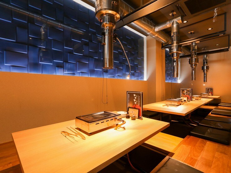 ブラウン系カラーでコーディネートされた店内は、肩ひじ張らずにくつろげる落ち着いた雰囲気。カウンター席・テーブル席・掘りごたつ式席・個室が用意され、普段使いはもちろん、休日に家族と訪れたり、記念日のお祝いをしたりと、さまざまな形で利用できます。サクッと一人焼肉を楽しみたい時は、壁に向き合う形のカウンター席がオススメです。