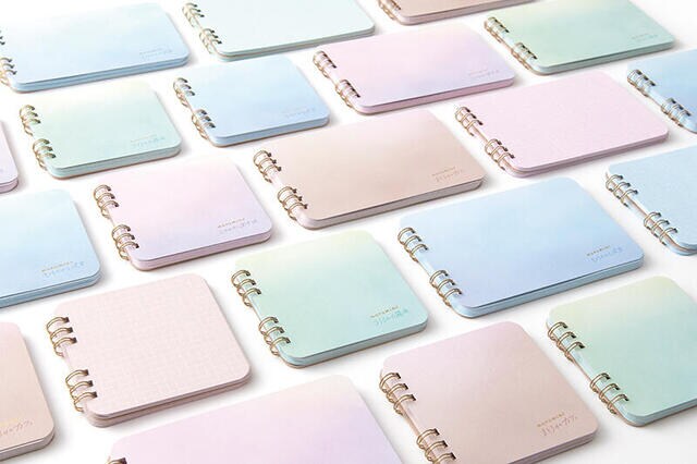 「まるみのノート」は、全ての角が丸く、優しい印象のリングノート。本文がカラーなので、ペンやデコレーションのニュアンスをより楽しめる。整理して書きやすい白色の5㎜方眼罫を採用しており、1ページを最大16分割できる目印入り。8分割にすると、一週間をまとめやすい。日々の記録を気軽に書けるちょうどいい大きさとページ数(120ページ)で、色ごとに用途ごとの使い分けなど、多冊使いにもぴったり。また、「まるみのふせん」と組み合わせて使うのもおすすめ。カラーのワンポイントで見やすく整理でき、ペンやはんこを使った際の裏抜けの心配もない。ライフログ、ToDo、ノートデコなどにおすすめ。