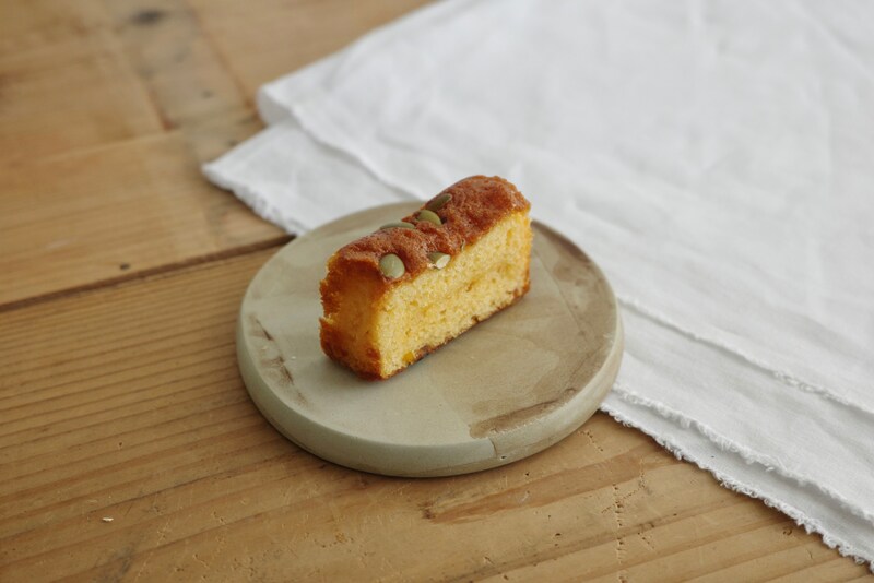 かぼちゃ味の生地にかぼちゃの甘露煮を練り込み、全体をしっとりと焼き上げたパウンドケーキ。