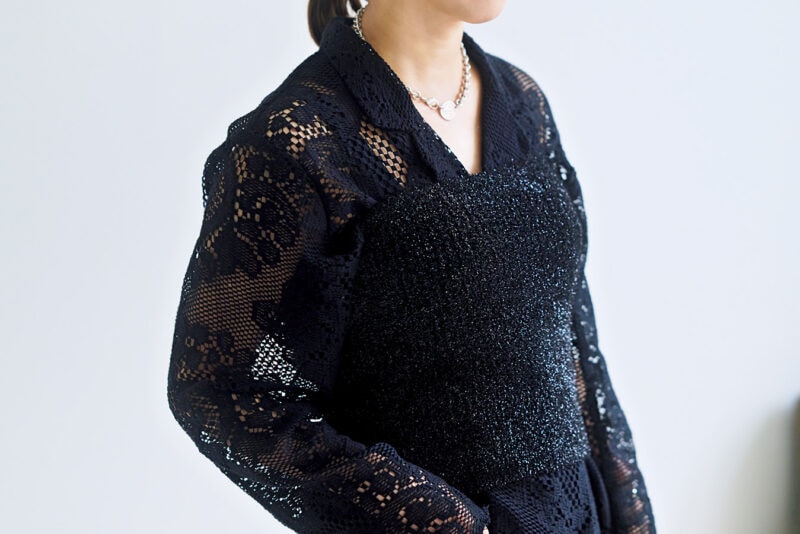 「レースなので上からビスチェを重ね着しても体になじみます」