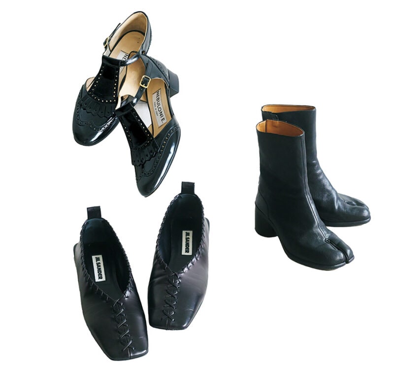 「スニーカーなどカジュアルな靴はめったに履かないですね」。右からメゾン マルジェラ、ネブローニ、ジル・サンダー