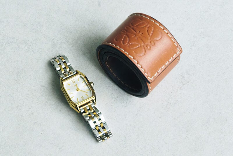 重ねづけ。毎日のように身につけているのはエテの時計とロエベのバングル。