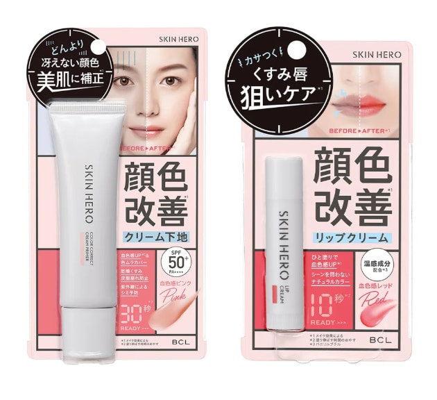 BCLの「スキンヒーロー」シリーズから、顔色を自然に整える新アイテムが登場しました。2025年10月7日発売の「顔色改善クリーム下地 01 血色感ピンク 1,320円(税込)」と「顔色改善リップクリーム 01 血色感レッド 990円(税込)」は、肌や唇のくすみをケアしながら、健康的な血色感をプラスしてくれます。ジェンダーレスに使えるアイテムです。潤いとツヤで叶えるくすみ知らずの肌・唇