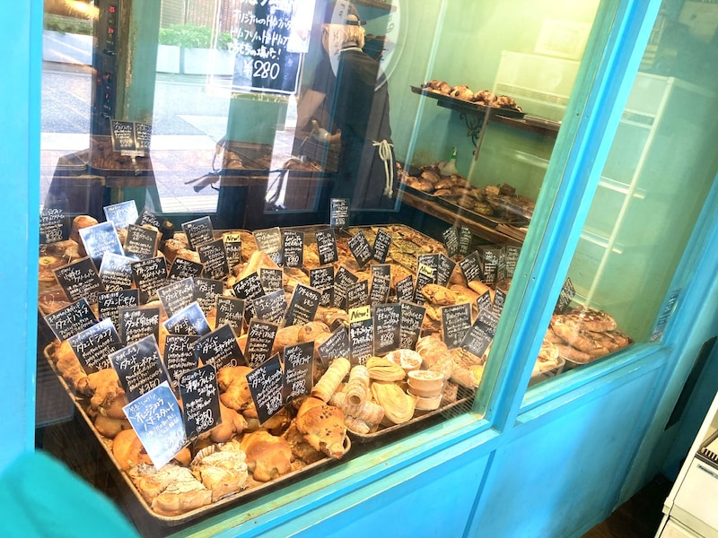 お店の間口は比較的狭めで、パンが沢山並んでいる様子が外からも見えます。