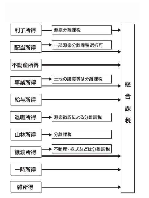 ほとんどの種類の所得は合算して「総合課税」となりますが、ほかの所得と合算せず、分けて課税される種類の所得もあります。