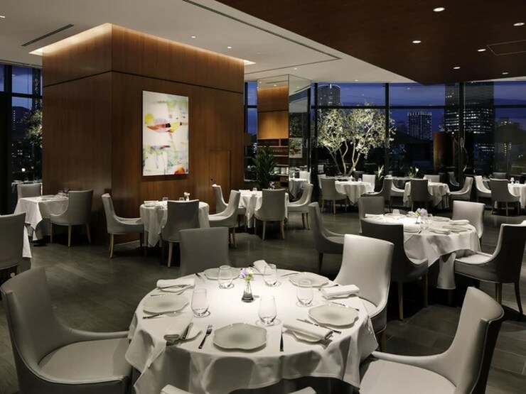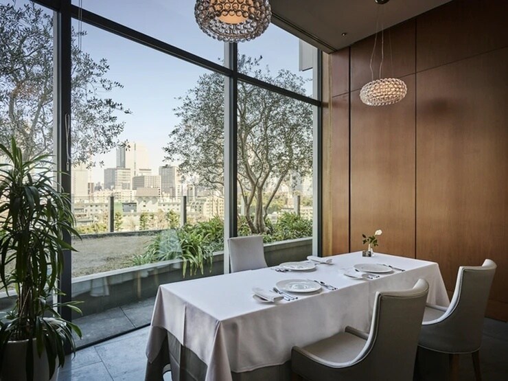 仏・シャンパーニュ地方のレストラン【ARBANE(アルバンヌ)】のオーナーシェフとして、フランス国内外で注目を集めるフィリップ・ミルの名を冠した、世界で唯一のレストランが【フィリップ・ミル 東京】。シャンパーニュのように艶やかなデザインが施された優雅なダイニングのほか、人気のガーデンデザイナーが手がけた緑豊かなテラス席も人気。さえぎるもののない東京の青空とミッドタウンの庭園が眺められます。