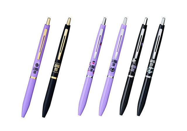 ボディには「ANNA SUI」を象徴する“ローズ”と“バタフライ”をメインモチーフにし、さらに人気の“ネコ”や“星”も加えて、全6柄をそろえた。なお、「ローズガーデン」は本企画のための描き下ろしたデザイン。ボディカラーは「ANNA SUI」のブランドカラーである黒と紫を基調に、さわやかな水色も加え、それぞれのモチーフの世界観を表現している。インキ色はすべて黒で、ボール径は0.3mmと0.5mmの2種類をラインアップ。