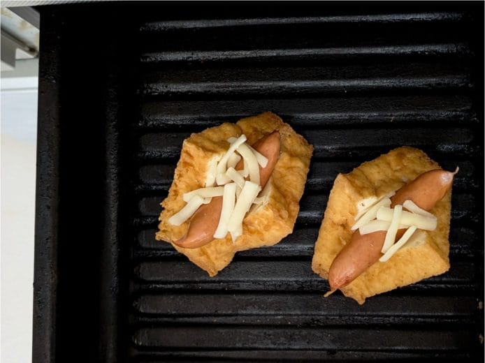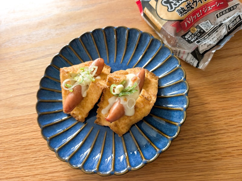 『丸大食品』のちくわやナスを使った一品から、他に挟めるものはないかと考えて思い浮かんだのがこちらのレシピ。厚揚げの香ばしさと、ウインナーの燻製香がなんとも相性バツグン。チーズなら塩気が増し、マヨネーズにするとまろやかさが増しますよ。