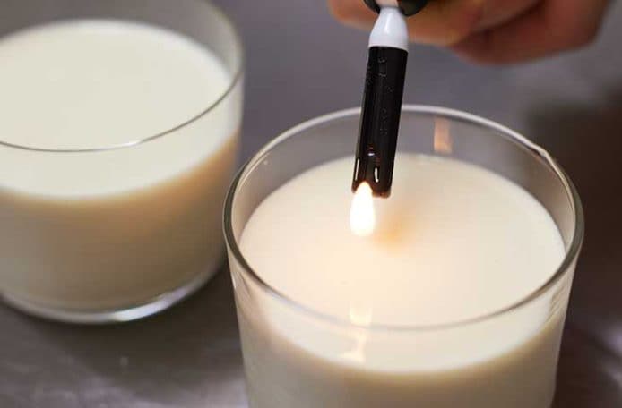 3.耐熱容器に半量ずつ注ぎ、気泡があればチャッカマンなどで消す。