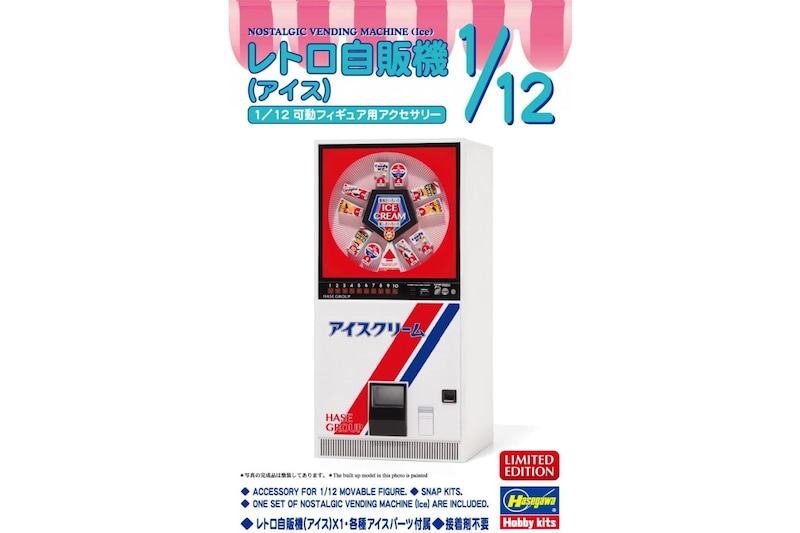Amazonでみるその懐かしい光景を、手のひらの上で再現できるのがこの「ハセガワ 1/12 レトロ自販機 アイス」です。