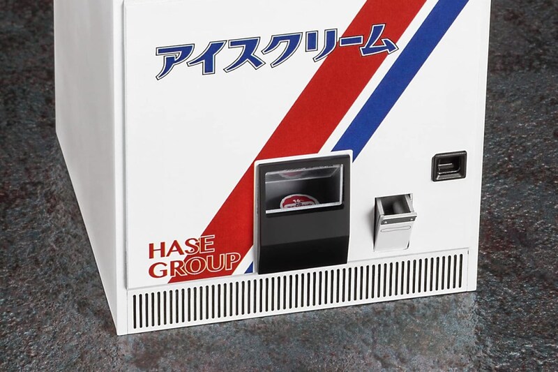 透明パネル越しに並ぶアイスのミニチュアまで精巧に作り込まれており、まるで実際にボタンを押せそうなリアリティがあります。