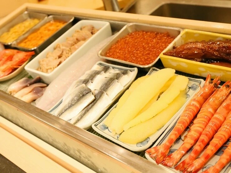 札幌駅から直結しているため、空港や各地からのアクセスがとても良い【すし善 大丸店】。高い職人技はそのままに、本物の寿司をより身近に味わうことができるお店です。カウンターにあるネタケースには、北海道産の豊富な鮮魚を中心に、日本の旬を取り入れた秀逸な食材がずらりと並んでいます。