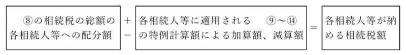 この課税価格は⑧「相続税の総額の各相続人等への配分額」を計算する際の配分基準としても使われます。