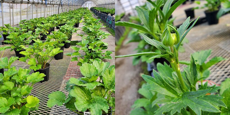 「もう一つのこだわりは、生長ホルモン剤を一切使用しないこと。輸送費や生産場のスペースの効率化のためコンパクトに育てようと、どうしてもホルモン剤(矮化剤)を使用してしまいがちです。しかし、植物にとってホルモン剤は大きなストレスになってしまいます。つぼみのまま咲かなかったり、球根が太らない・増えないなどの影響が出る場合も。ストレスを感じたまま休眠に入ると、上手く夏越しできないこともあります。平田ナーセリーの農場では、ホルモン剤を使用せず、贅沢なほどのスペースを使い、鉢と鉢の間隔を充分にとり、全ての葉に光と風を当てて、しっかりとした株に育てています」