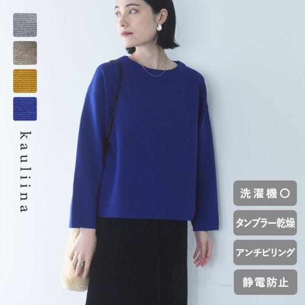 軽やかな着心地 マシュマロミラノ ロングシーズン活躍する マルチ機能 シンプルニット 洗濯機・タンブル乾燥OK 毛玉になりにくい 静電防止/kauliina カウリーナ