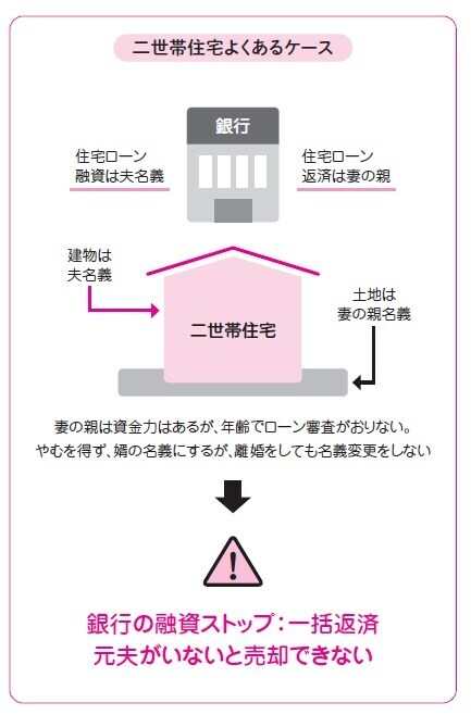 さらに、二世帯住宅にして、土地は妻の親名義、建物・ローンの名義は夫、しかし実際にローンを返済しているのは妻の親で、名義が変更できないケースもよく聞きます。