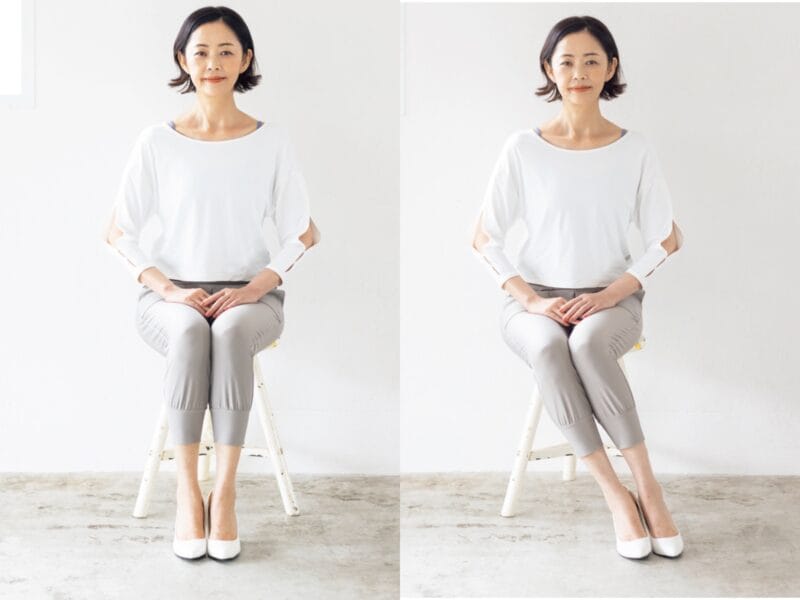 ④左右の脚をぴったりつけて、ふくらはぎや膝の内側、太もものつけ根に隙間がなければ完璧です。