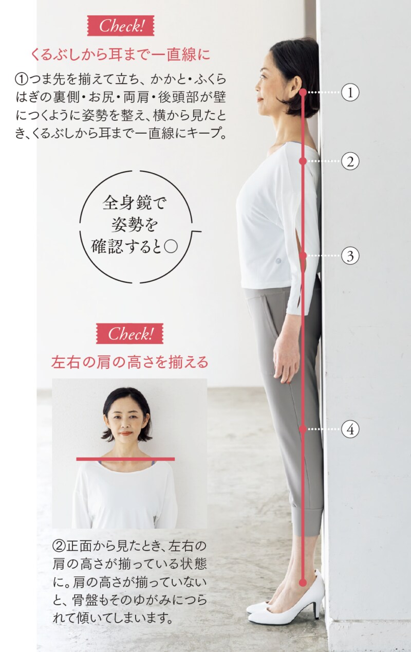 「背すじがちゃんと伸びていると気持ちも上がり、不思議なくらい自信やオーラにあふれた自分になれます。この先も好きな洋服を着て颯爽と歩いていけるよう、普段の姿勢から見直しましょう」