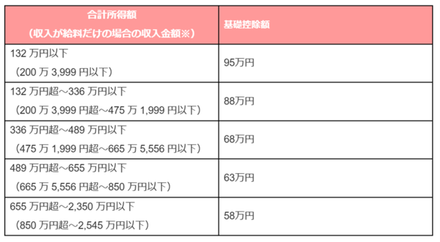令和7年税制改正後の基礎控除額は、従来のように一定ではなくなり、本人の所得額によって変動します。