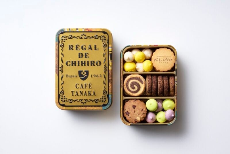 1963年の創業以来、本格的な自家焙煎珈琲とぬくもりを感じるスイーツが人気の名古屋のカフェ&パティスリー「カフェタナカ」と特別コラボした缶入りクッキー。装飾的モチーフとクラシックな書体が印象的な「黄金缶」でクリムトの作品世界を表現しています。注目は、クリムトの絵画に多く登場する「渦巻柄」を描いたオリジナルクッキー。センスあふれるデザインはギフトにもおすすめです。