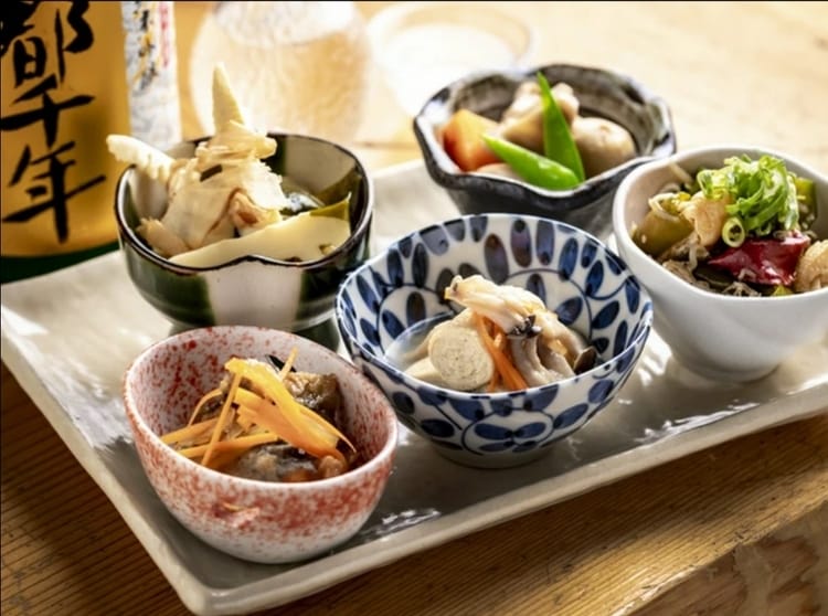 おばんざいがずらっと並んだカウンター席で京都ならではの食材と地酒を堪能