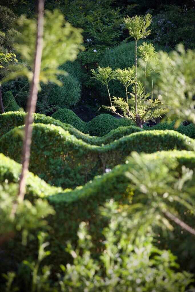 この考え方は、日本庭園から学んだものです。たとえば島根県の「足立美術館」では、松の木を前景は大きく、奥に行くほど小さく配置し、実際よりも広く感じさせる遠近法を巧みに使っています。トピアリーというと、“彫刻”のように捉えられてしまいますが、私にとって彫刻は動かない完成品。一方で、植物を使った造形は常に変化し動きのあるもの。剪定者と植物の間にある“対話”による変化が何より面白いのです。