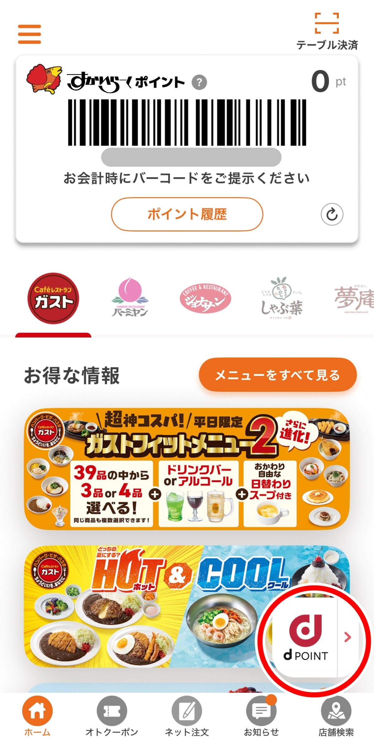 今回のキャンペーンで必要となる「すかいらーくポイント」。dポイントはアプリやカードで貯めていても、すかいらーくポイントは利用していないという人もいるかもしれませんね。