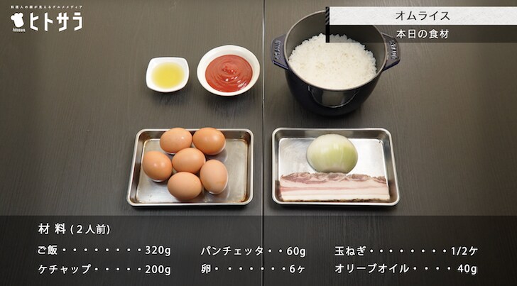 2025年10月23日 オムライスのつくり方。YouTubeで話題のシェフRopiaが教える“プロの味”|プロのレシピ#19 ヒトサラMAGAZINE 材料(2人分)ごはん:320gパンチェッタ:60g玉ねぎ:1/2個ケチャップ:200g卵:6個オリーブオイル:40gつくり方 次ページ > 01.食材の下準備 < 1 2 3 4 >