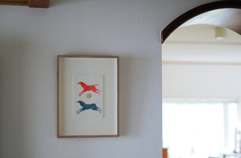 ーところどころに自身の作品を飾って。「暮らしの空間の中で絵がどのように見えるのか、この家でも実験しているんです」