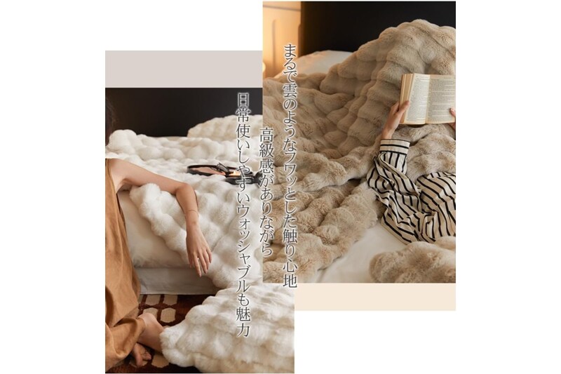 Amazonでみるモコモコのボリューム感と優しい温もりで、まるで雲の上で眠っているような気分に。