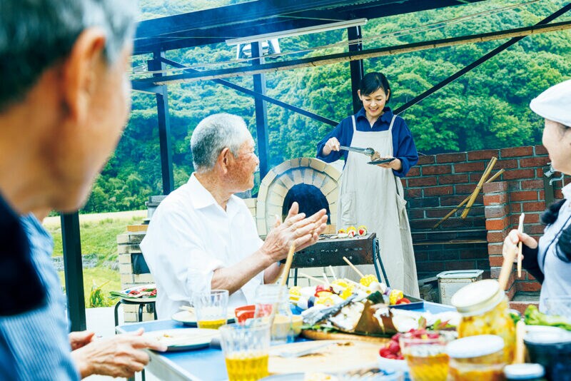 自宅に新設したかまど、石窯、バーベキュー台で、親戚やご近所さんと外ごはんを楽しむことも。