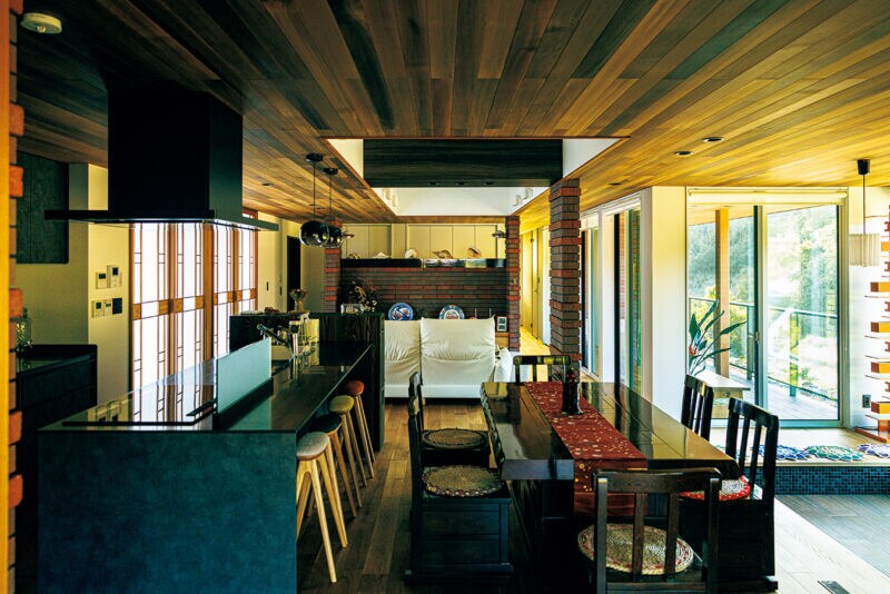ダイニングの横に薪ストーブを配置。