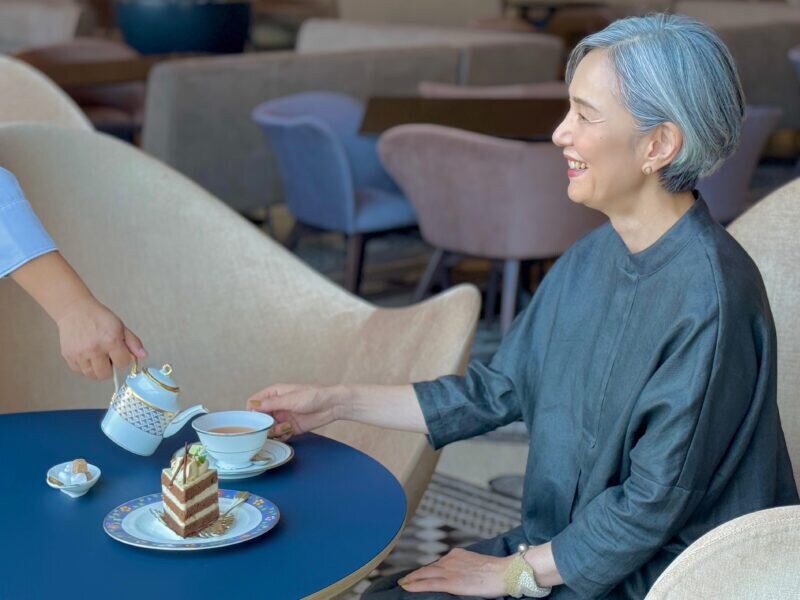 床のモザイクも、イタリアから呼び寄せた職人たちの手仕事によるもの。沙織里さんの足もとのモチーフは藤で、日本的なデザインを表現している唯一無二の美です。