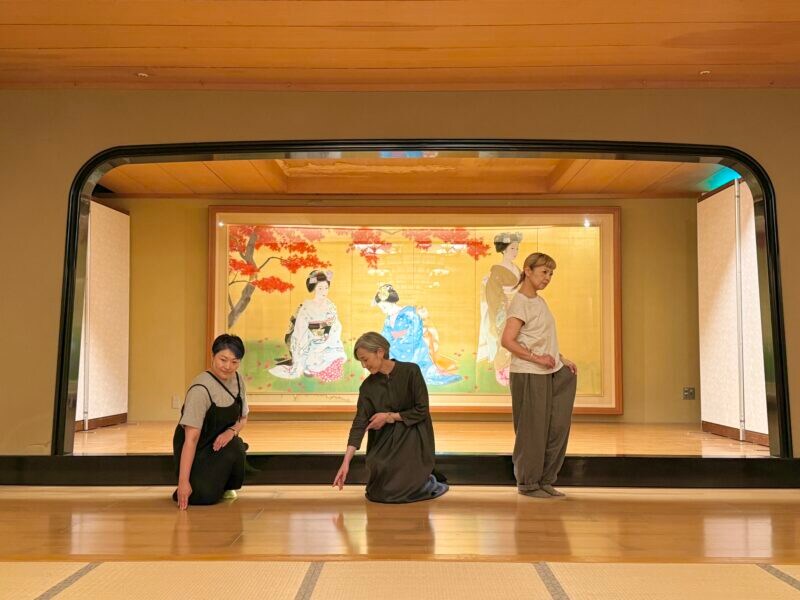 お座敷には、美人画を得意とした日本画家・中尾淳氏による「六曲一双」が飾られていたので、ちょっとあやかってみました。
