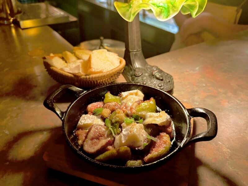 こちらでも、旬のいちじくをいただきました。ベーコンとカマンベールチーズとともに仕上げたアヒージョ! いちじくって、焼いても美味しいんですね。