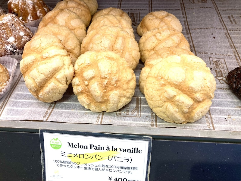 未来の地球環境を考えたパンとして、植物性素材のみを使用したメロンパンがあります。(筆者注;こちらのパンは、通常の動物性素材使用のものとの違いが分からないくらいレベルの高いパンでした)
