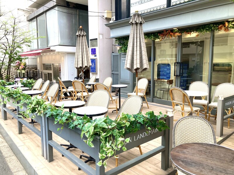 お店の前に広く取ったテラス席があります。これもパリのカフェみたいで、とてもお洒落です。