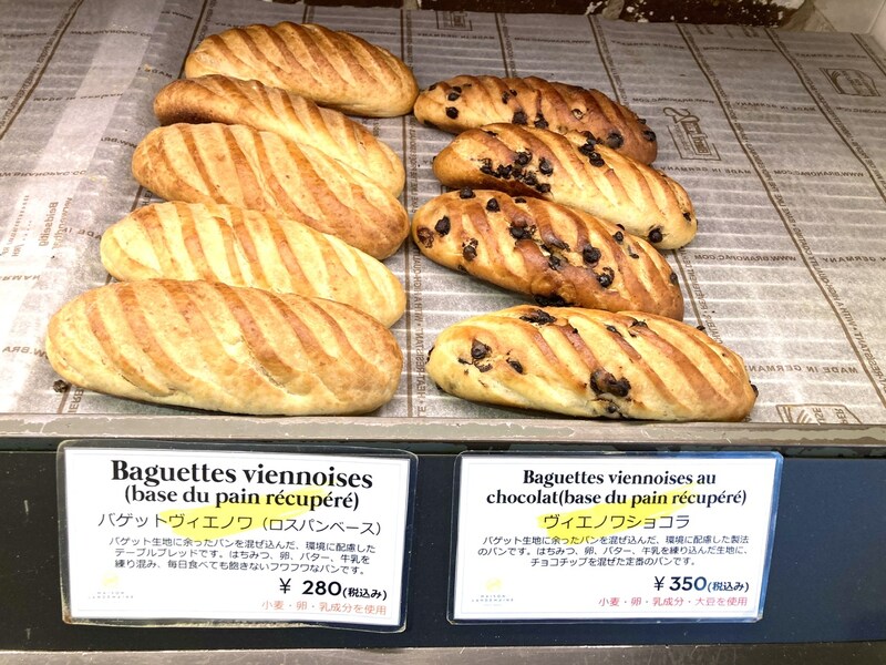 そしてロスパンにも取り組んでいて、バゲット生地に残ったパンを混ぜ込んだ「ヴィエノワ」は、プレーンとショコラの2種類があります。(筆者注:シンプルでソフトなパンですが、食事に合うパンです)