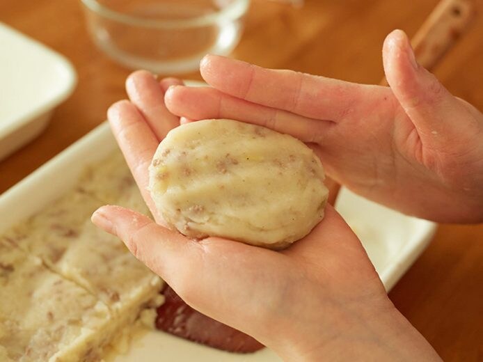 <point>タネが熱いと爆破の原因になるのでしっかり冷ます。柔らかいので冷やした方が成形もしやすいです。