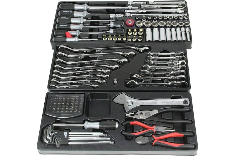 Amazonでみるレンチやソケット、ドライバー、プライヤーなど、車やバイクのメンテナンスに必要な工具をフル装備。