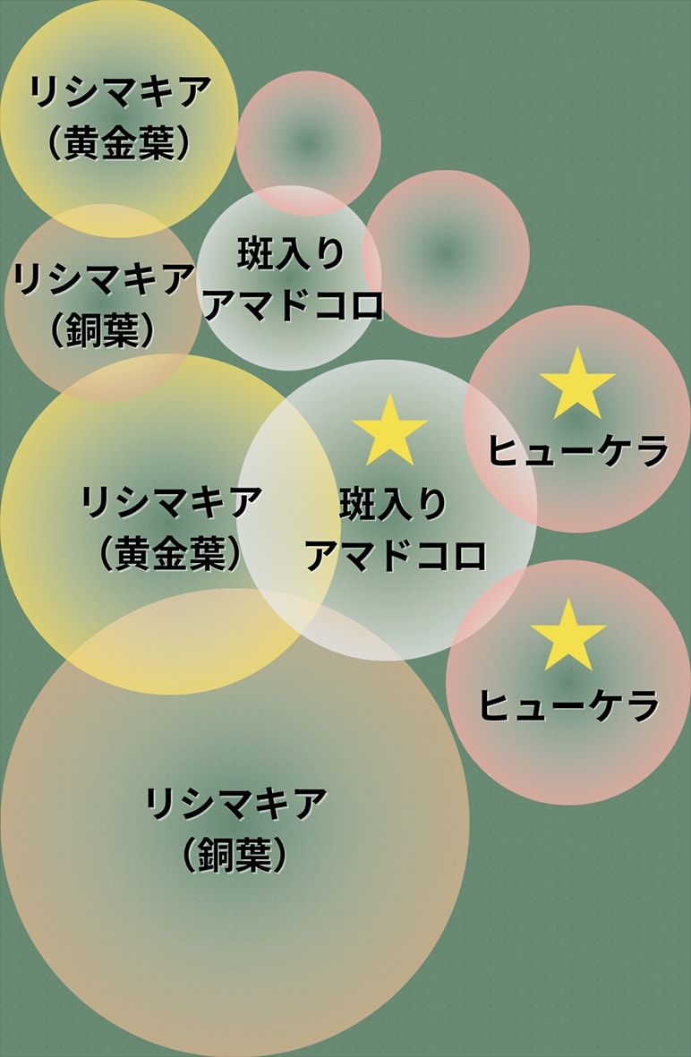 主役(図面★):斑入りアマドコロ(上)、ヒューケラ(下)